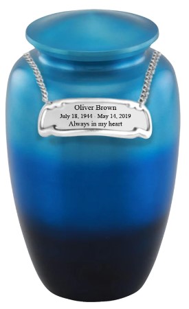 This Classic Ombre Urn is a Genuine Hand-crafted product ensuring each urn is UNIQUE and DURABLE, as well as ECONOMIC. Classic Ombre Urn fits the remains of most adults weighing up to 200 lbs. The urn is made from solid metal and the perfect lacquer coat to preserve its brilliance. It comes with a top opening with a threaded lid and felt bottom.