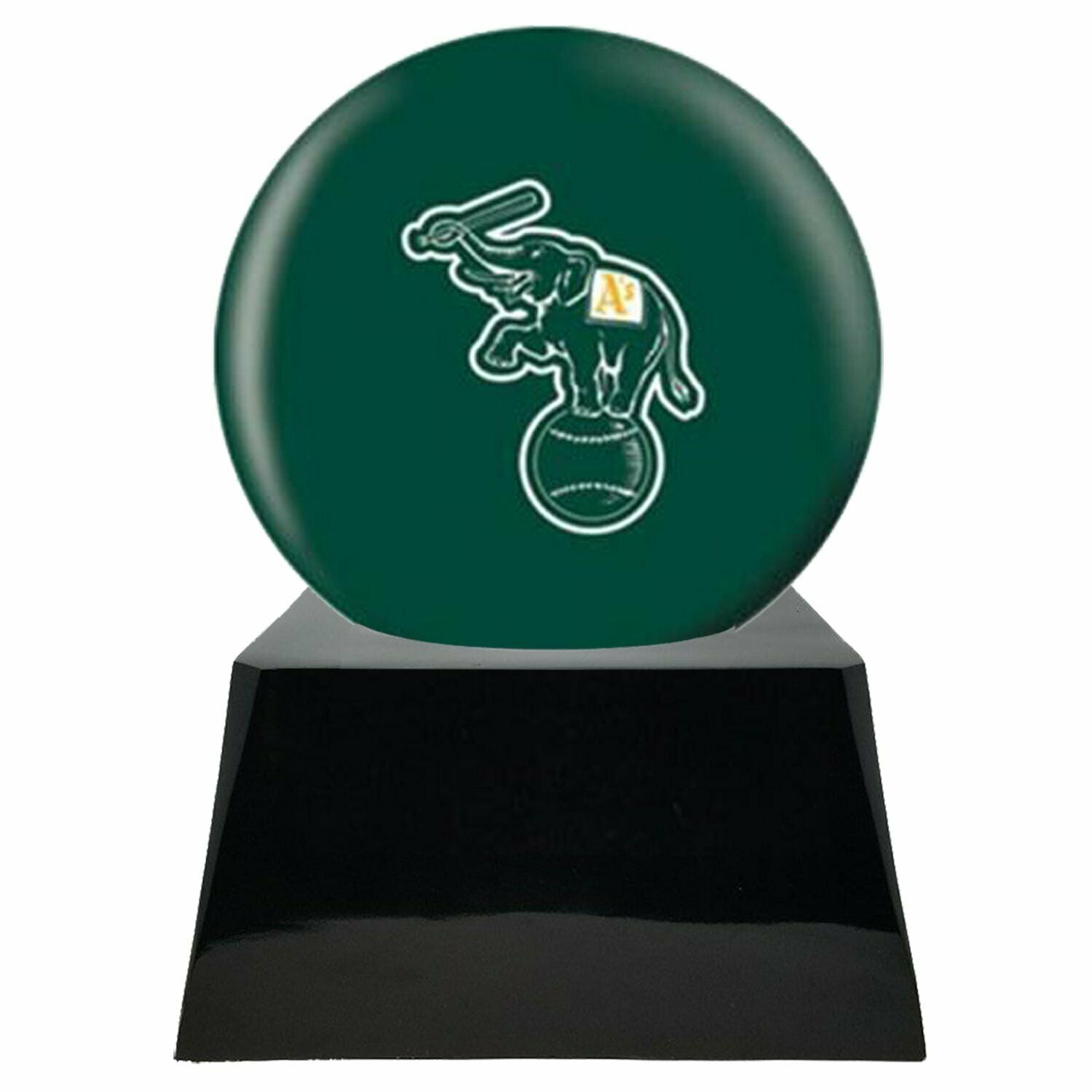 The item you are looking at is our Number 034-IUKR303, a large/adult sized, black colored metal cremation urn base displaying an Oakland Athletics metal team ball.