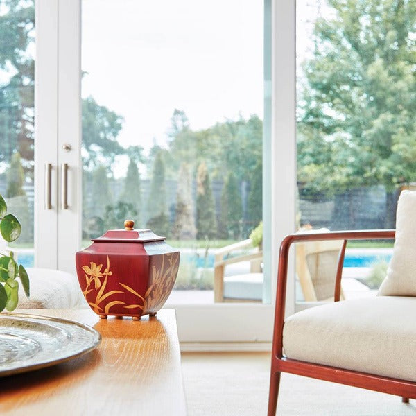 Orchid Burgundy Resin Adult 200 Cubic Inch Funeral Cremation Urn for Ashes