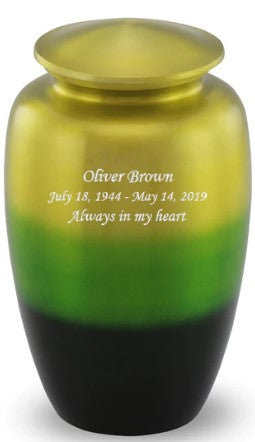 At Peace Memorials Yellow & Green Ombre Cremation Urn for ashes 200 CI