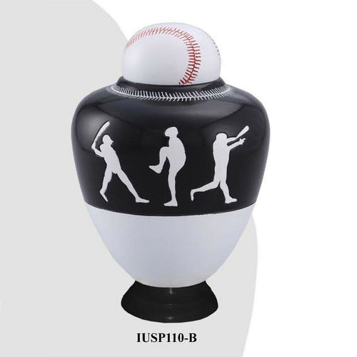 Large/Adult 200 Cubic Inch Metal Black Baseball Team Funeral Cremation Urn