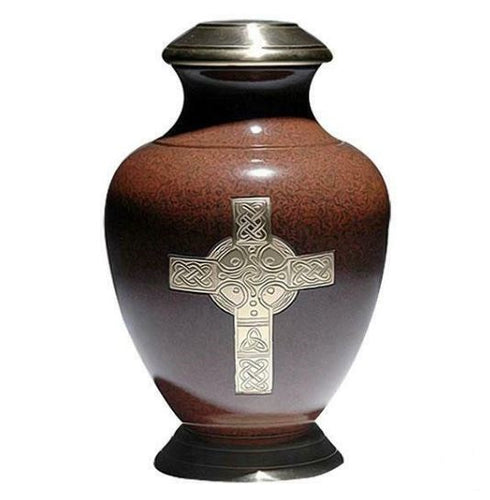 Large/Adult 200 Cubic Inch Brown Brass Celtic Religious Funeral Cremation Urn