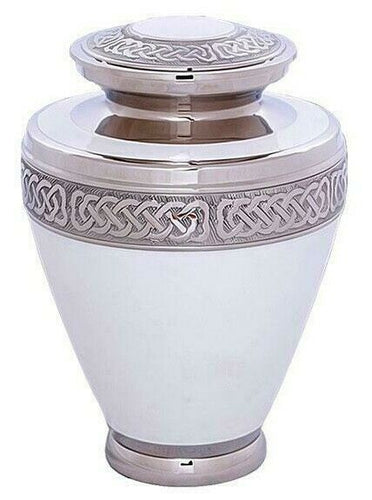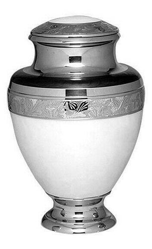 Large/Adult 200 Cubic Inch Elegant White Brass Funeral Cremation for Ashes