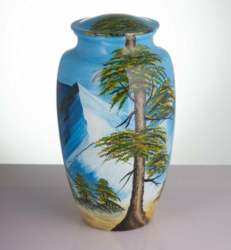 Large/Adult 200 Cubic Inch Hand Painted Mountains & Trees Funeral Cremation Urn