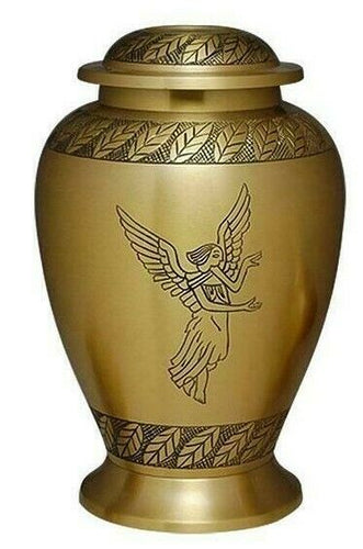 Large/Adult 200 Cubic Inch Brass Angel Engraving Funeral Cremation Urn for Ashes