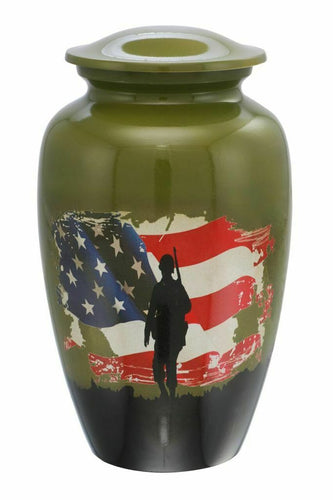 Large/Adult 210 Cubic Inch Metal Men Uniform Soldier Flag Funeral Cremation Urn