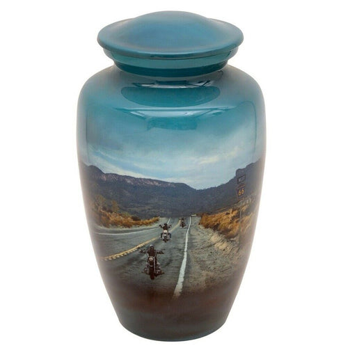 Large/Adult 210 Cubic Inch Metal Motorcycle Rider Funeral Cremation Urn