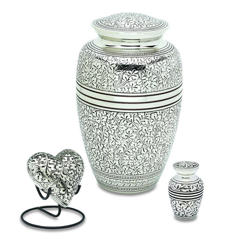 Antique Silver Set of 3 - Adult, Keepsake, Heart - Cremation Urns for Ashes