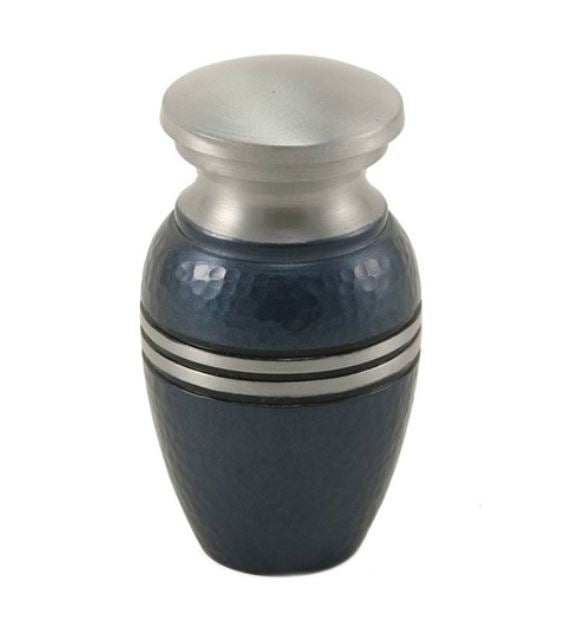 A piece of your heart is in heaven, let their legacy live on with an aluminum cremation urn from our Legacy Metallics Collection. This full-size piece has a unique texture, two small accent bands, and a metallic blue finish.