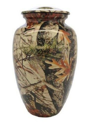 Large/Adult 200 Cubic Inch Woodsman Camouflage Aluminum Cremation Urn for Ashes