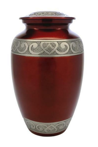 Large/Adult 200 Cubic Inch Ruby Hearts Aluminum Funeral Cremation Urn for Ashes