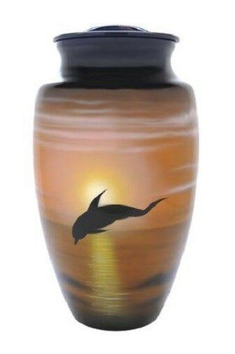 Large/Adult 200 Cubic Inch Aluminum Dolphins in Flight Cremation Urn for Ashes