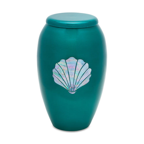 Large/Adult 210 Cubic Inches Aluminum/Mother of Pearl Seashell Cremation Urn