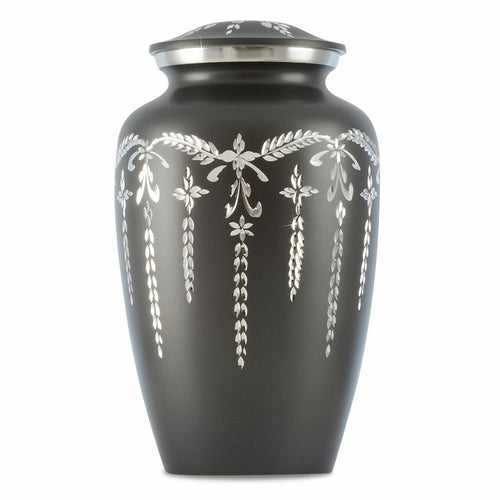 Large/Adult 220 Cubic Ins Black & Pewter Aluminum Funeral Cremation Urn for Ashes