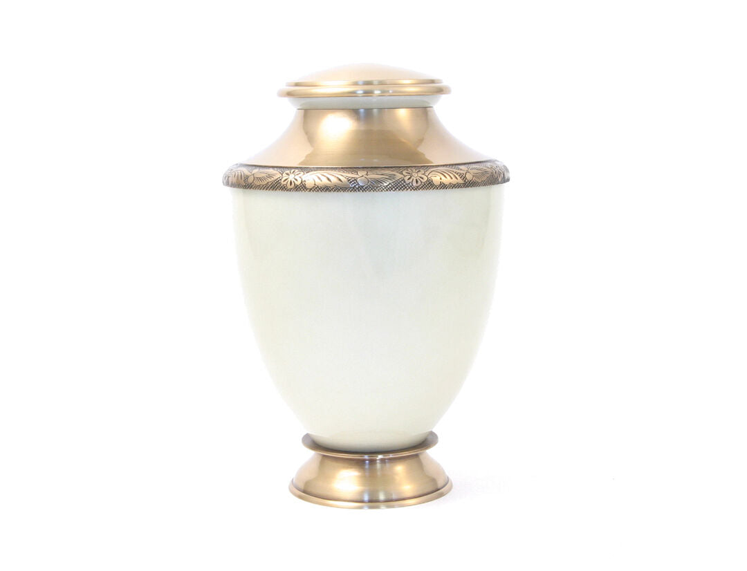 The item you are looking at is our Model Number 012-4612H, a keepsake sized, white colored, aluminum and brass cremation urn.