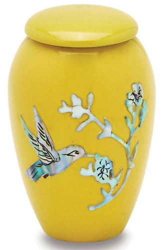 Yellow Hummingbird 3 Cubic Inches Small/Keepsake Funeral Cremation Urn for Ashes