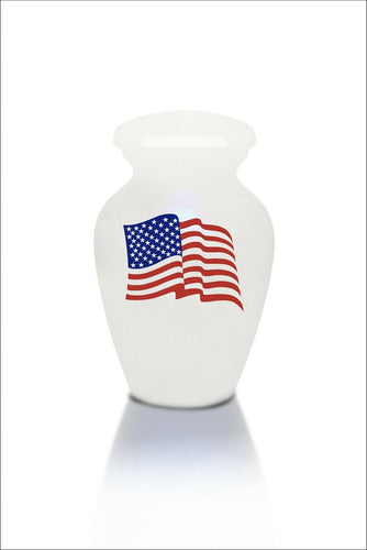 Extra Small 3 Cubic Inch White with American Flag Alloy Funeral Cremation Urn