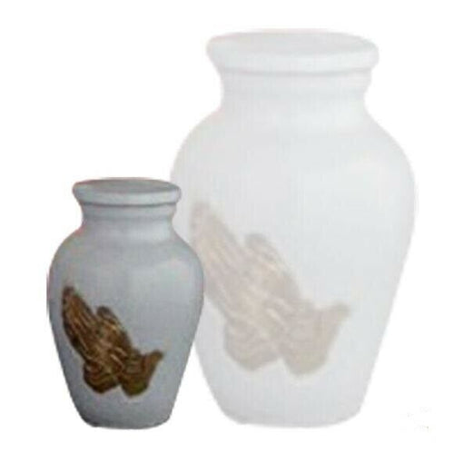 Small/Keepsake 4 Cubic Inch Classic White Praying Hands Funeral Cremation Urn