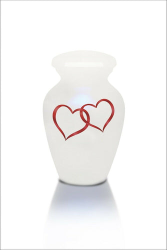 Extra Small 3 Cubic Inch White with Double Hearts Alloy Funeral Cremation Urn
