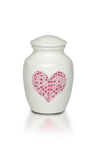 Extra Small 15 Cubic Inch Pink Heart Alloy Funeral Cremation Urn for Ashes