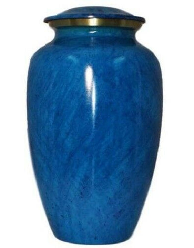 Small/Keepsake Aluminum Blue Memory Light Cremation Urn, 20 cubic inches