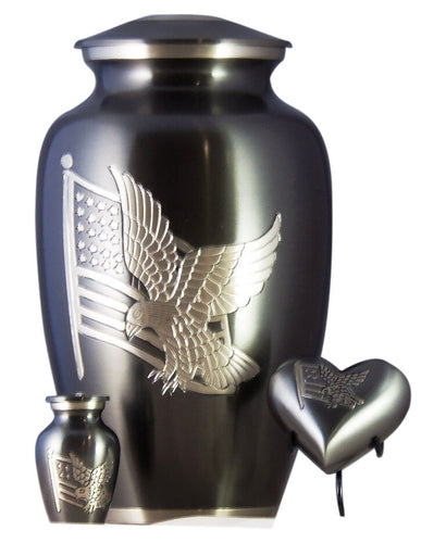 American Flag Eagle Aluminum Keepsake Cremation Urn For Ashes, 3 Cubic Inches