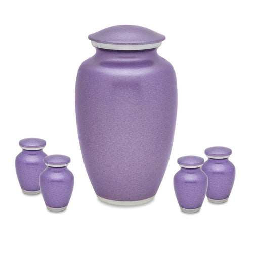 Set of Violet Aluminum Funeral Cremation Urns for Ashes - Adult & 4 Keepsakes