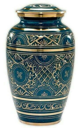Large/Adult 200 Cubic Inch Classic Blue Brass Funeral Cremation Urn for Ashes
