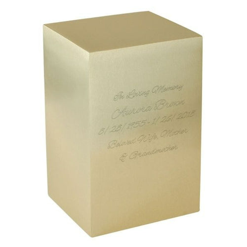Large/Adult 235 Cubic Inches Gold Square Brass Funeral Cremation Urn for Ashes