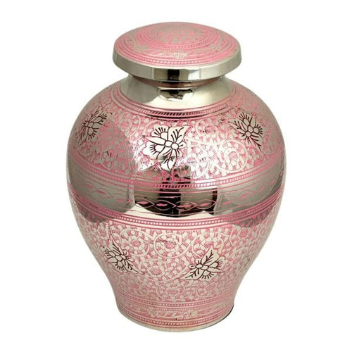 Large/Adult 228 Cubic Ins Pink Butterflies Brass Funeral Cremation Urn for Ashes