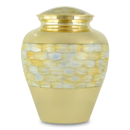 Large/Adult 230 Cubic Inches Mother of Pearl Brass Cremation Urn for Ashes