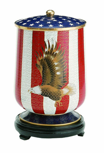 Large/Adult 220 cubic inches Flag & Eagle Cloisonne Cremation Urn for Ashes