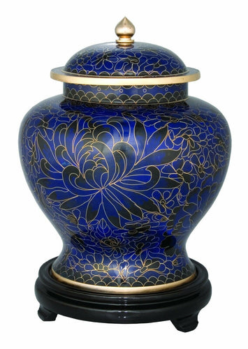 Large/Adult 220 cubic inches Royal Blue Cloisonne Cremation Urn for Ashes