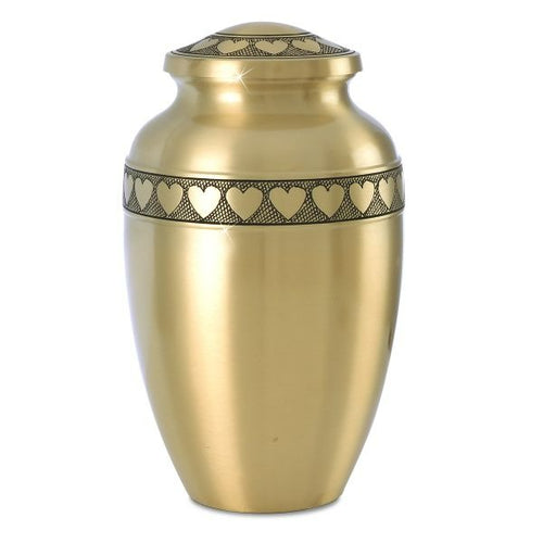 Large/Adult 228 Cubic Inches Gold Ring of Hearts Brass Cremation Urn for Ashes