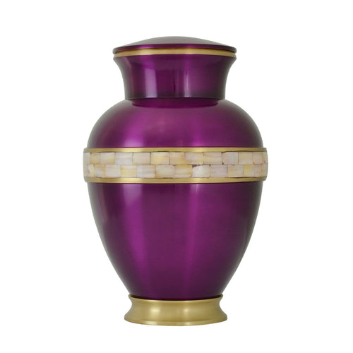 Large/Adult 220 Cubic Ins Purple Mother of Pearl Brass Cremation Urn for Ashes