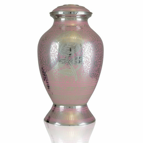 Large/Adult 220 Cubic Inches Pink Rose Brass Funeral Cremation Urn for Ashes
