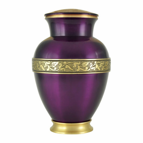 Large/Adult 220 Cubic Inches Purple Brass Funeral Cremation Urn for Ashes