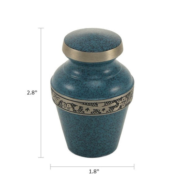 At Peace Memorials Avalon Evening Blue Mini Keepsake w/Velvet Bag Cremation Urn