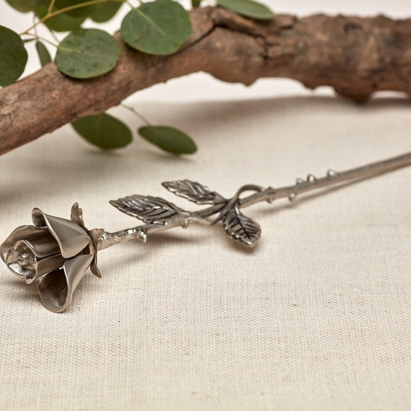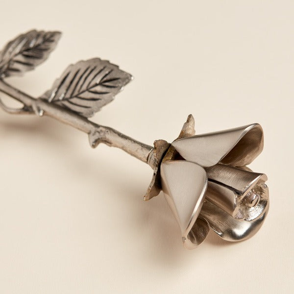 · Made of brass, resembling a real rose with a detailed stem in a gorgeous pewter finish.