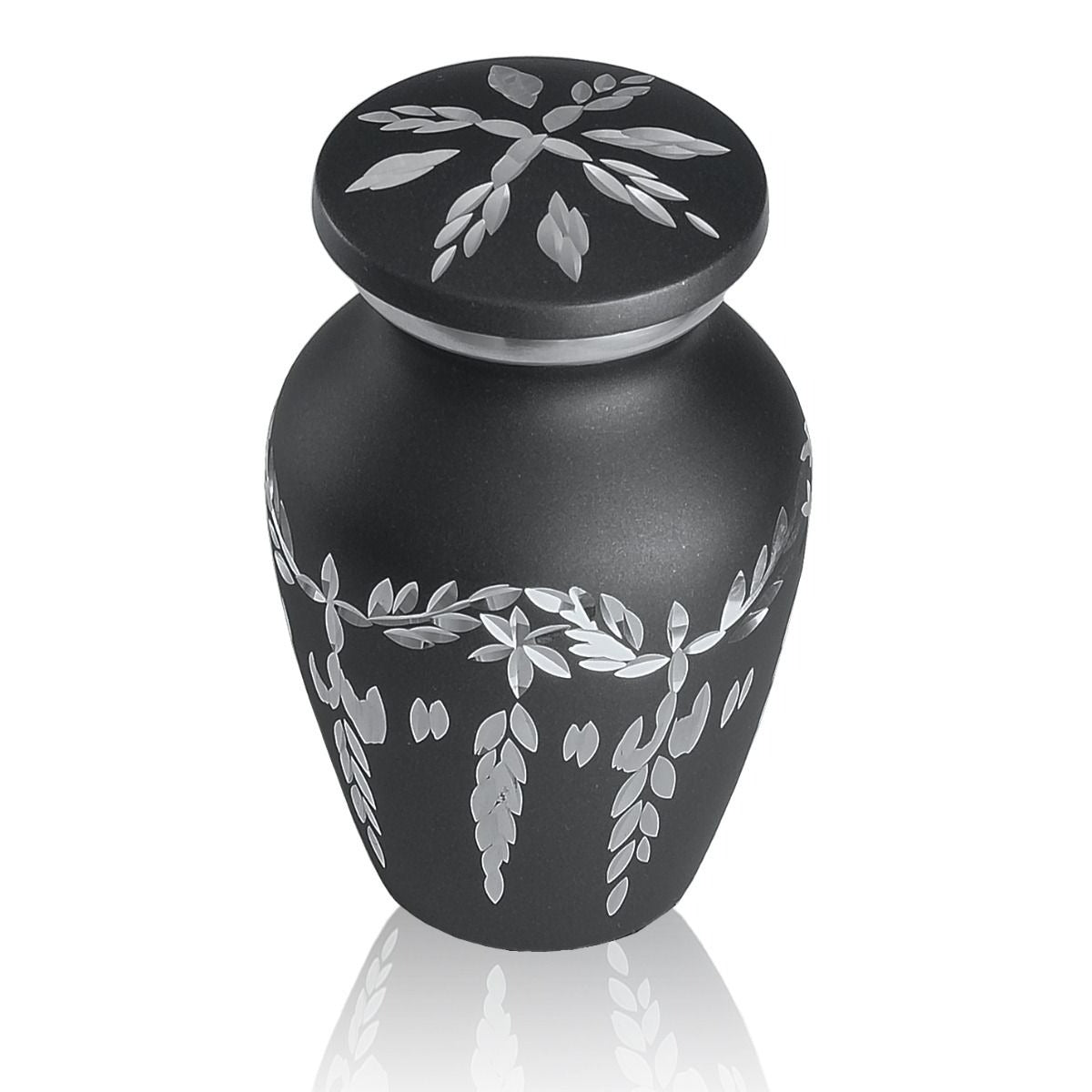 Small yet meaningful, this brass keepsake urn is finished in soft pewter and adorned with elegant hand-engraved leaf patterns. Designed to fit comfortably in the palm of your hand, it provides a secure way to hold a small portion of your loved one’s ashes. A graceful tribute to cherish for years to come.