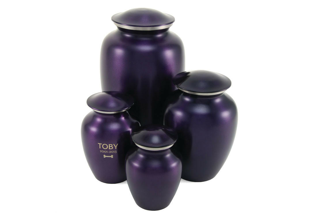 The item you are looking at is our Model Number 012-9505S, a small/keepsake sized, violet colored, solid brass cremation urn.