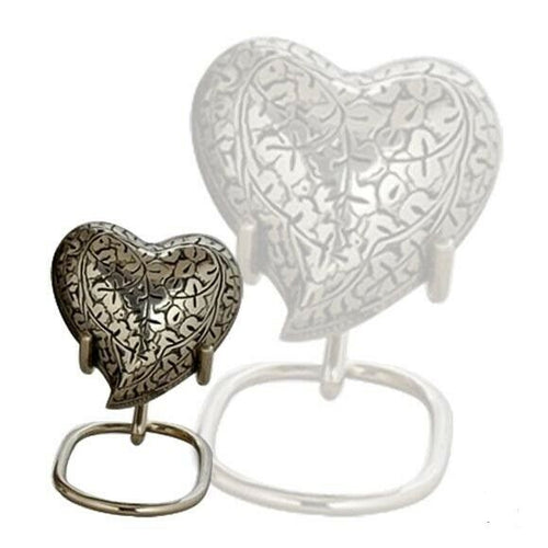 Small/Keepsake 5 Cubic Inch Silver Oak Heart Brass Funeral Cremation Urn