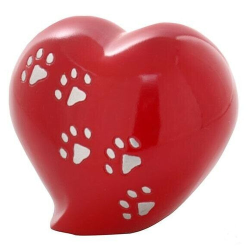 Small/Keepsake 5 Cubic Inch Red Heart Paw Pet Funeral Cremation Urn for Ashes