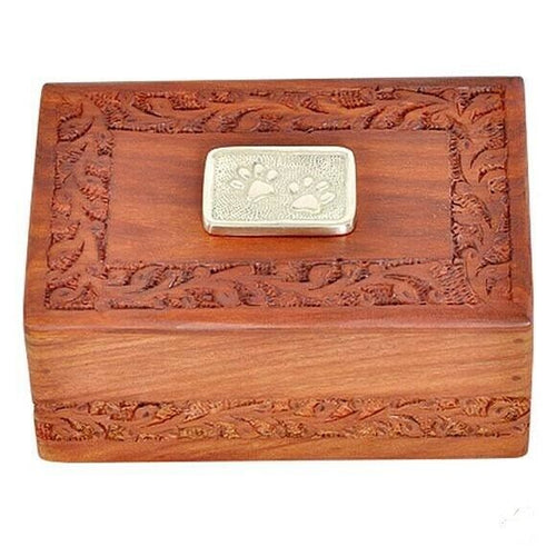 Small/Keepsake 30 Cubic Inch Rosewood/Brass Paw Prints Pet Funeral Cremation Urn