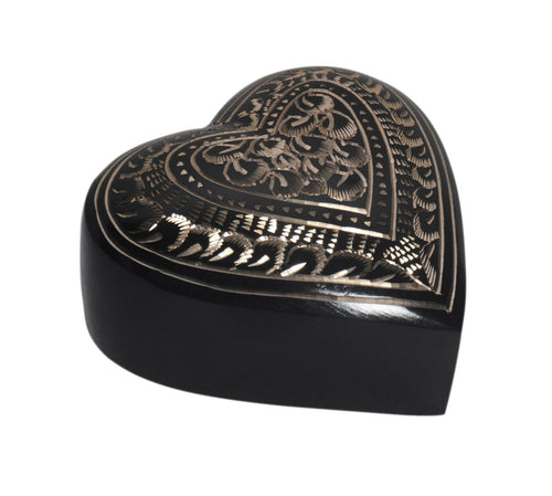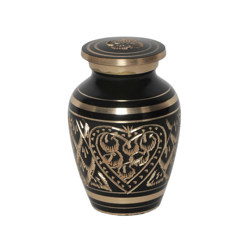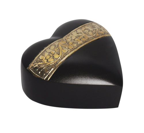 Small/Keepsake 3 Cubic Inches Heart Etched Ebony Brass Funeral Cremation Urn