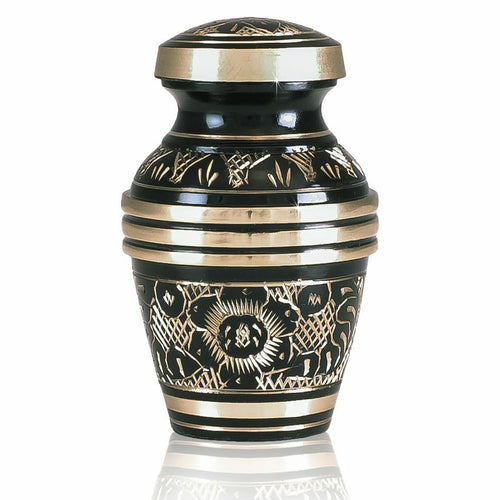 Small/Keepsake 3 Cubic Inches Etched Ebony Brass Funeral Cremation Urn for Ashes