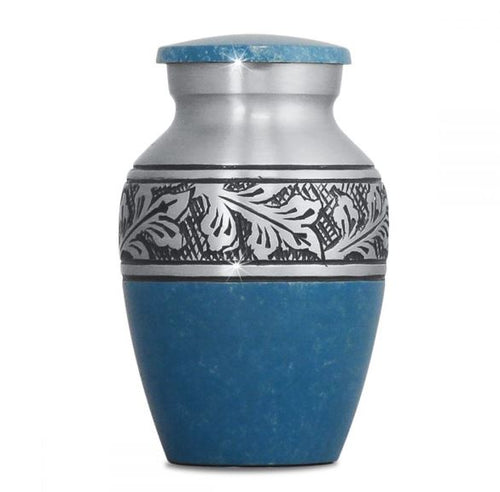 Small/Keepsake 4 Cu. In. Light Blue Pewter Leaf Funeral Cremation Urn for Ashes