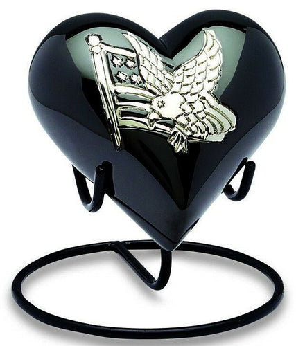 American Flag 3 Cubic Inch Heart Keepsake Funeral Ashes Cremation Urn With Stand