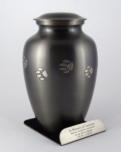 45 Cubic Ins Brushed Nickel Brass Pawprint Pet Cremation Urn with Engraved Base