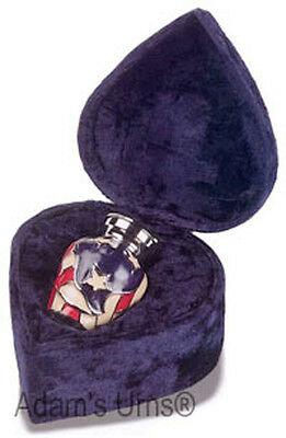 Patriotic American Flag Color, Brass Funeral Cremation Urn Keepsake w. Heart Box